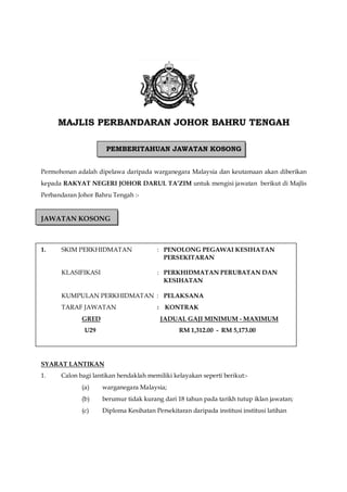 Jawatan Kosong Majlis Perbandaran Johor Bahru Tengah Mpjbt 04 September 2017 Jawatan Kosong Kerajaan Swasta Terkini Malaysia 2021 2022